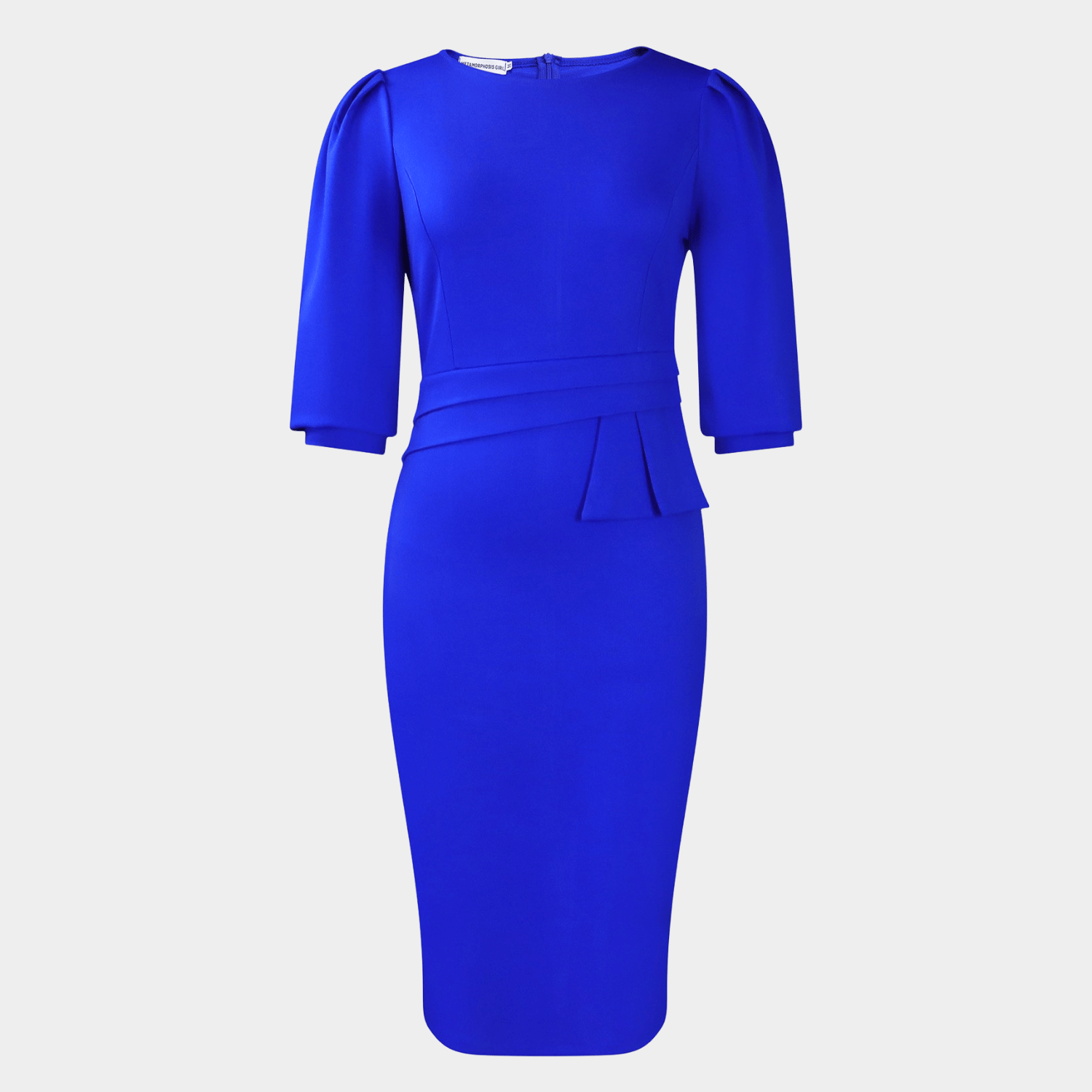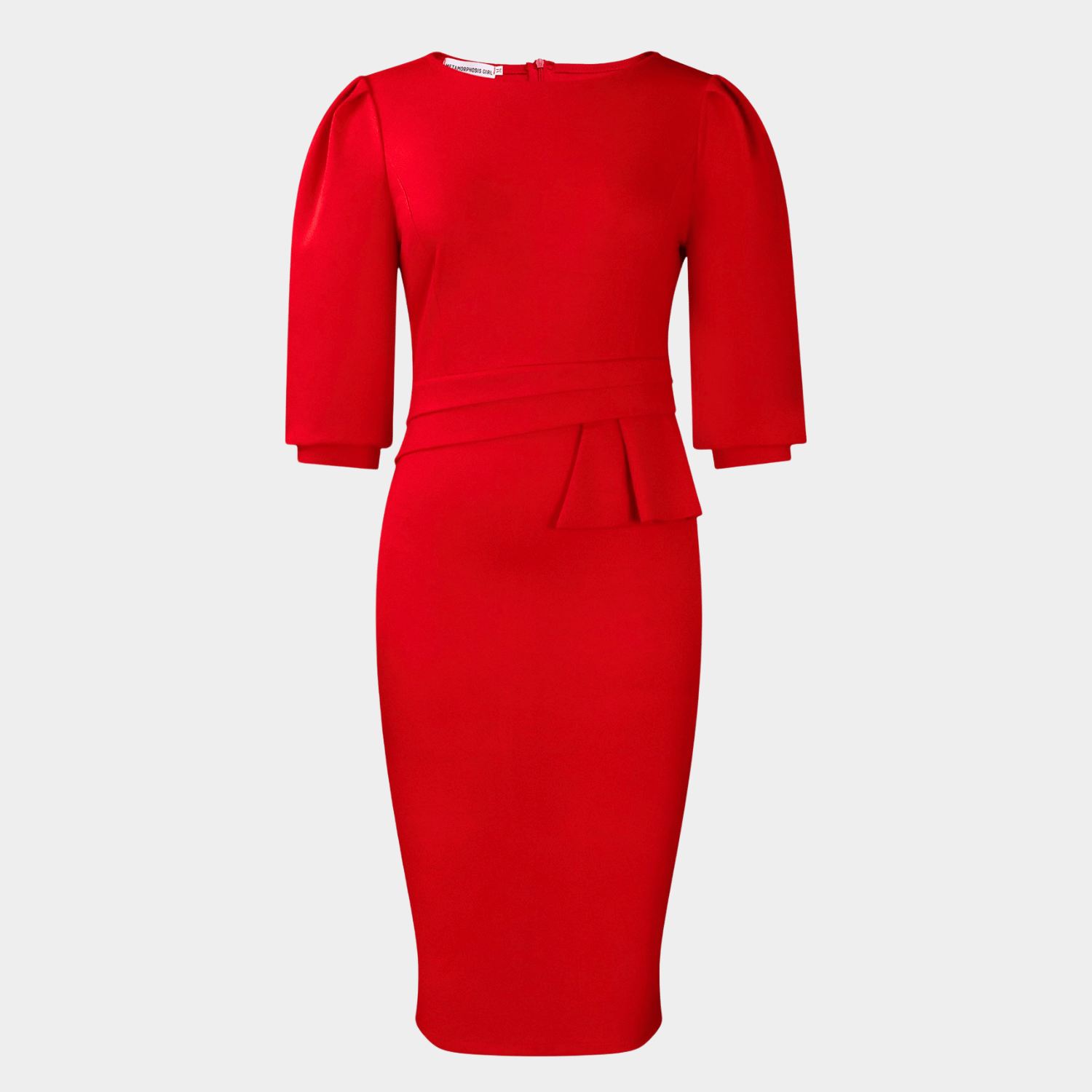 - Design: Body-shaping midi silhouette, tailored waist definition, three-quarter sleeves, clean neckline, and refined lines.